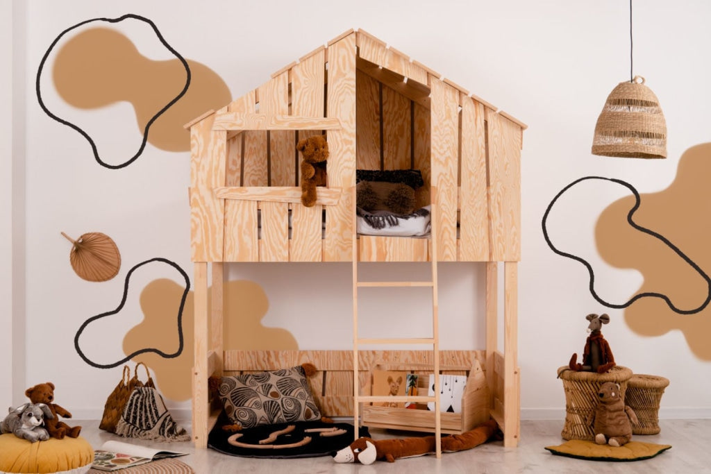 Welches Holz wird verwendet?Wie bei den meisten Kindermöbeln verwenden wir massives Kiefernholz. Kiefernholz ist als eines der weicheren Hölzer bekannt (was bedeutet, dass es angenehm zu verarbeiten ist) und hat ein sehr sauberes und minimalistisches Erscheinungsbild. Einige Betten bestehen aus Multiplex (Sperrholz): geschichtetes Holz, das für seine Stärke bekannt ist. Wir verwenden KEIN MDF (Pressholz).