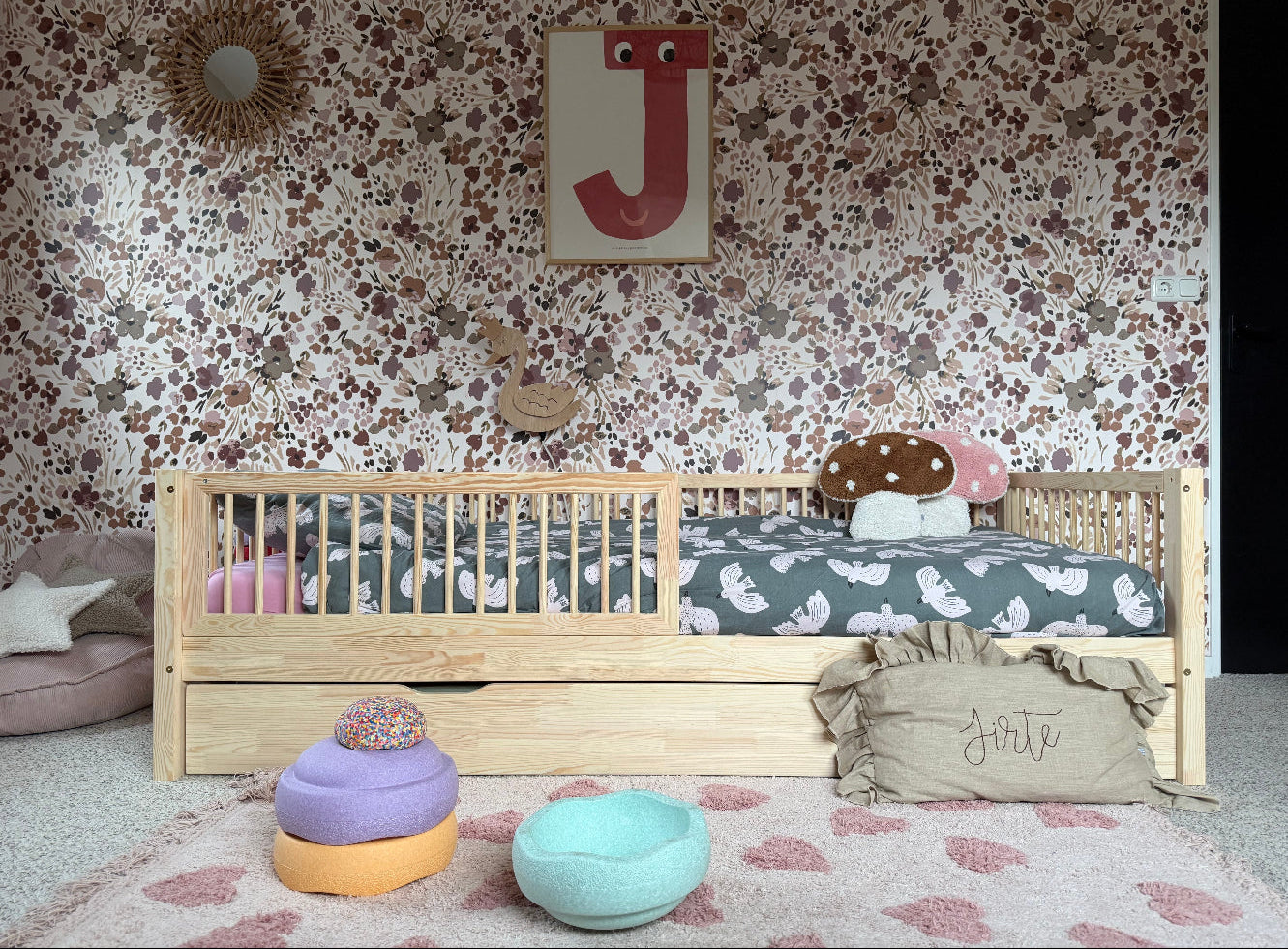 Dieses Juniorbett macht den Wechsel vom Babybett zum Kinderbett zum Kinderspiel. Der abgerundete Zaun verleiht dem Bodenbett im Montessori-Stil ein Gefühl von Komfort und Sicherheit. Ein toller Treffpunkt für die Kleinen zum Spielen und Schlafen. Und trotzdem stylisch.
