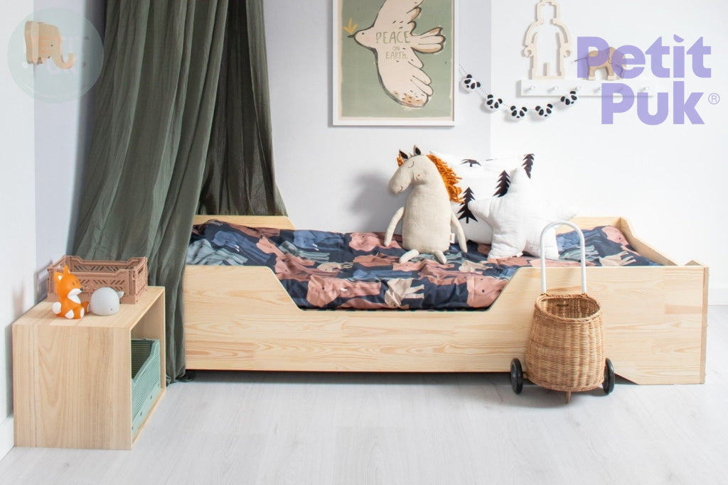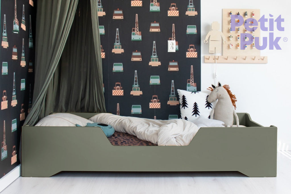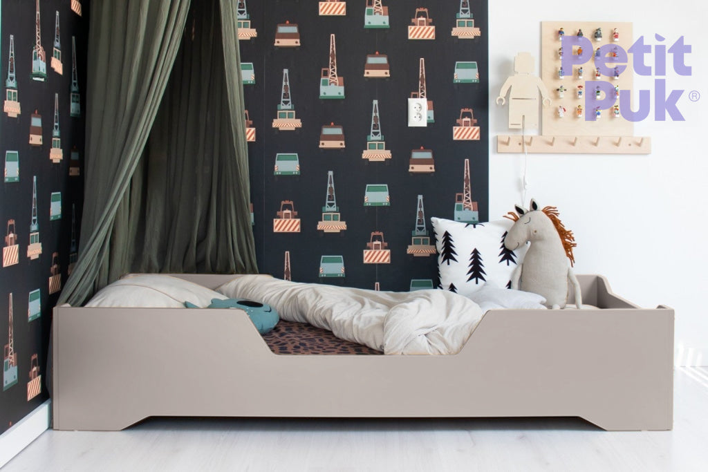 Esta cama Montessori a ras de suelo FLO facilita la transición de la cuna a una cama infantil.