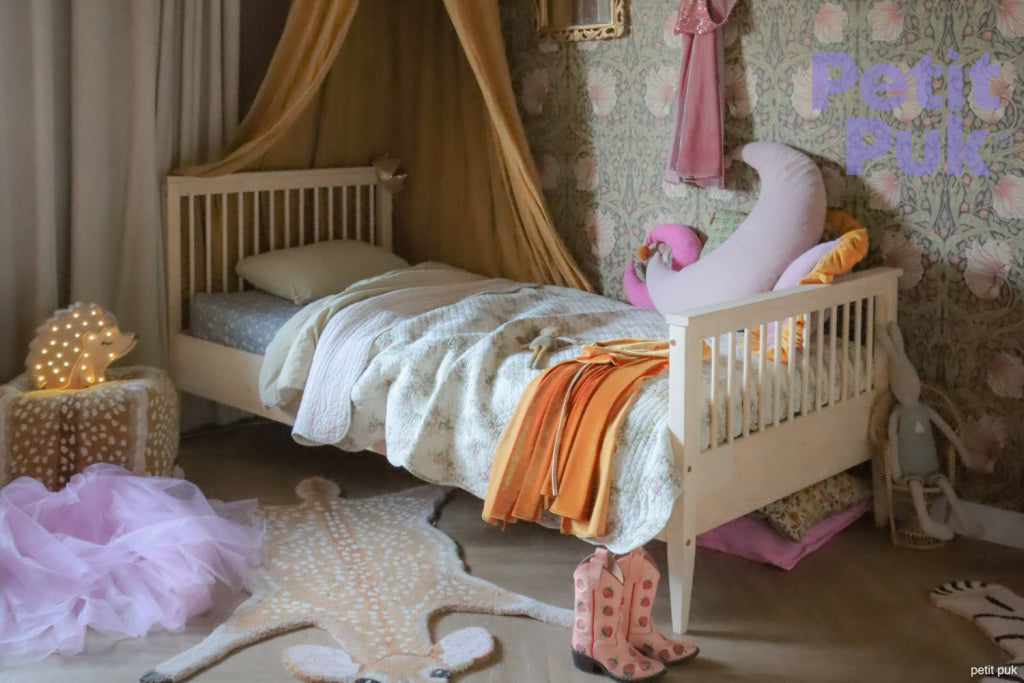 Ce joli lit de rêve facilite la transition d'un berceau à un lit d'enfant. La clôture arrondie ajoute une sensation de confort et de sécurité au lit.