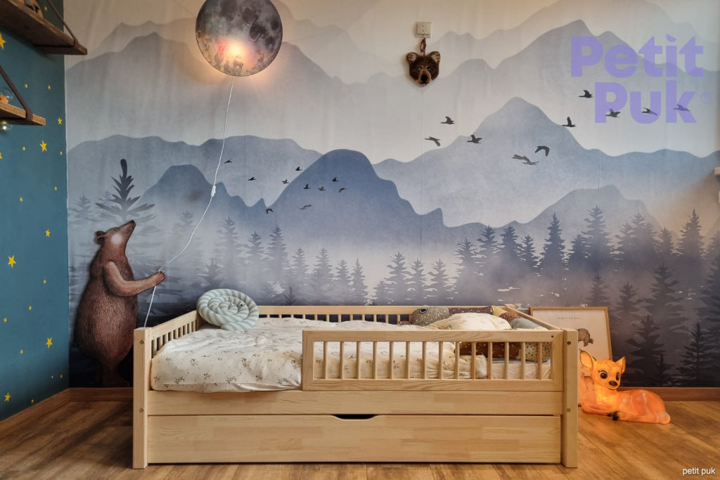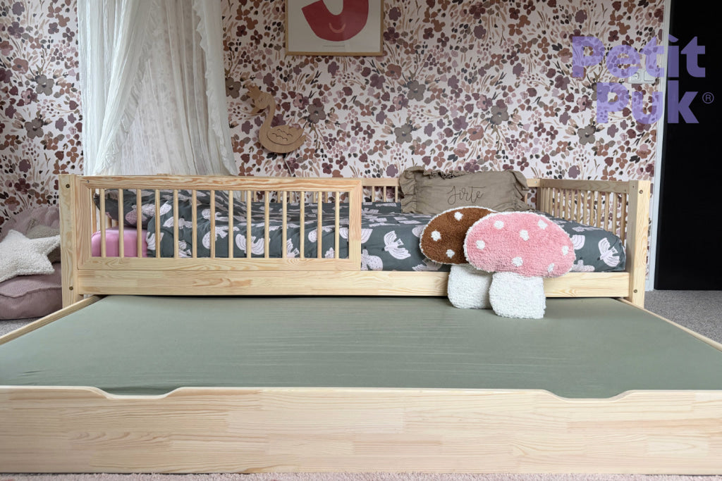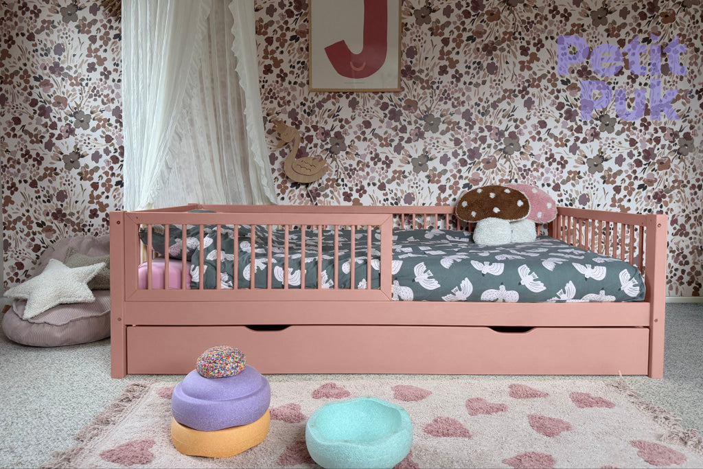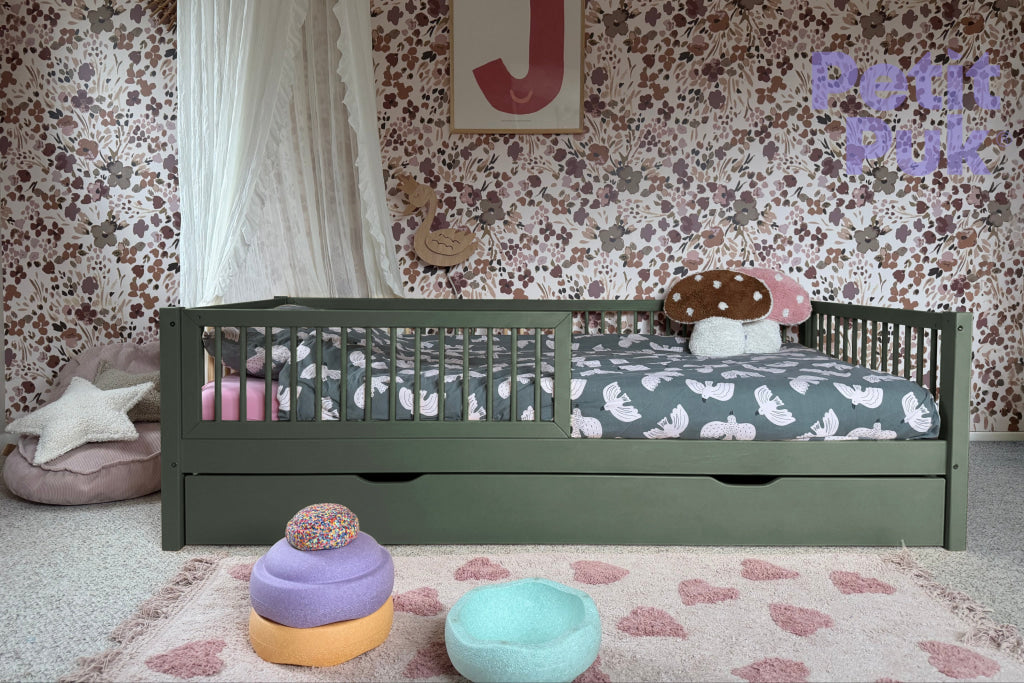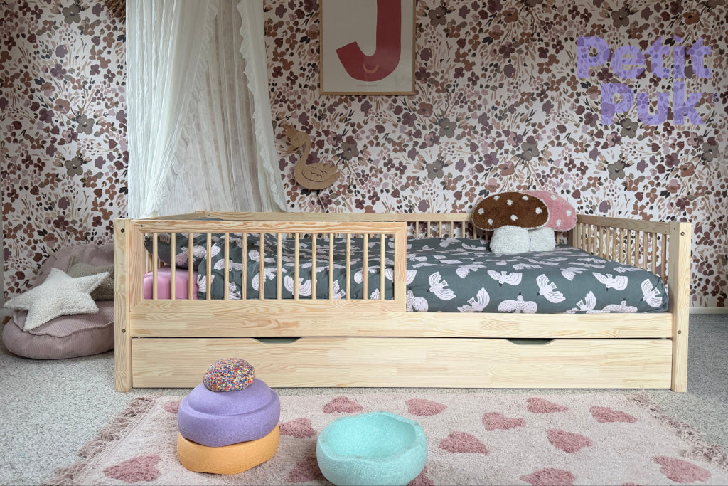 Ce lit pour tout-petits facilite la transition d'un berceau à un lit d'enfant. La clôture arrondie ajoute une sensation de confort et de sécurité au lit au sol de style Montessori. Un lieu idéal pour que les plus petits puissent jouer et dormir. Et pourtant élégant.