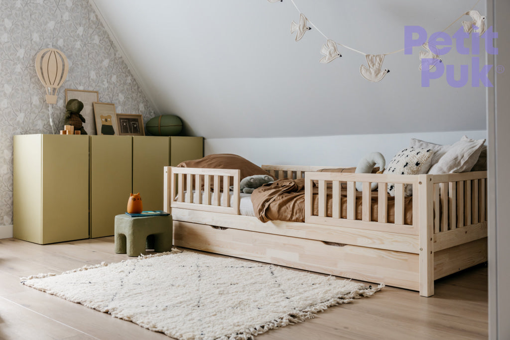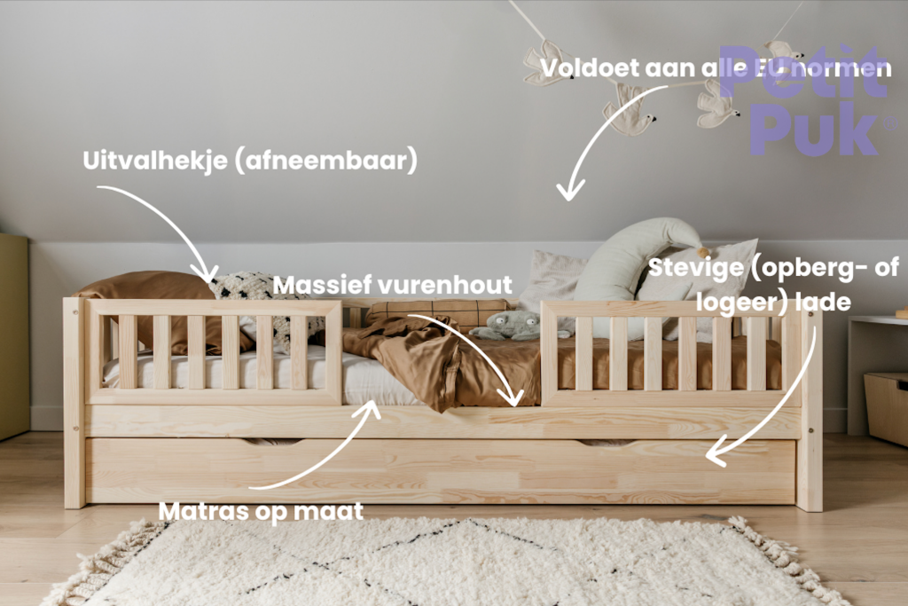 Welk hout wordt er gebruikt?Zoals bij de meeste kindermeubels gebruiken wij massief vurenhout. vurenhout staat bekend als een van de zachtere houtsoorten (wat betekent dat het prettig is om mee te werken) met een zeer schoon en minimalistisch uiterlijk. Sommige bedden zijn gemaakt van multiplex: gelaagd hout, bekend om zijn sterkte. Wij gebruiken GEEN MDF (geperst hout).